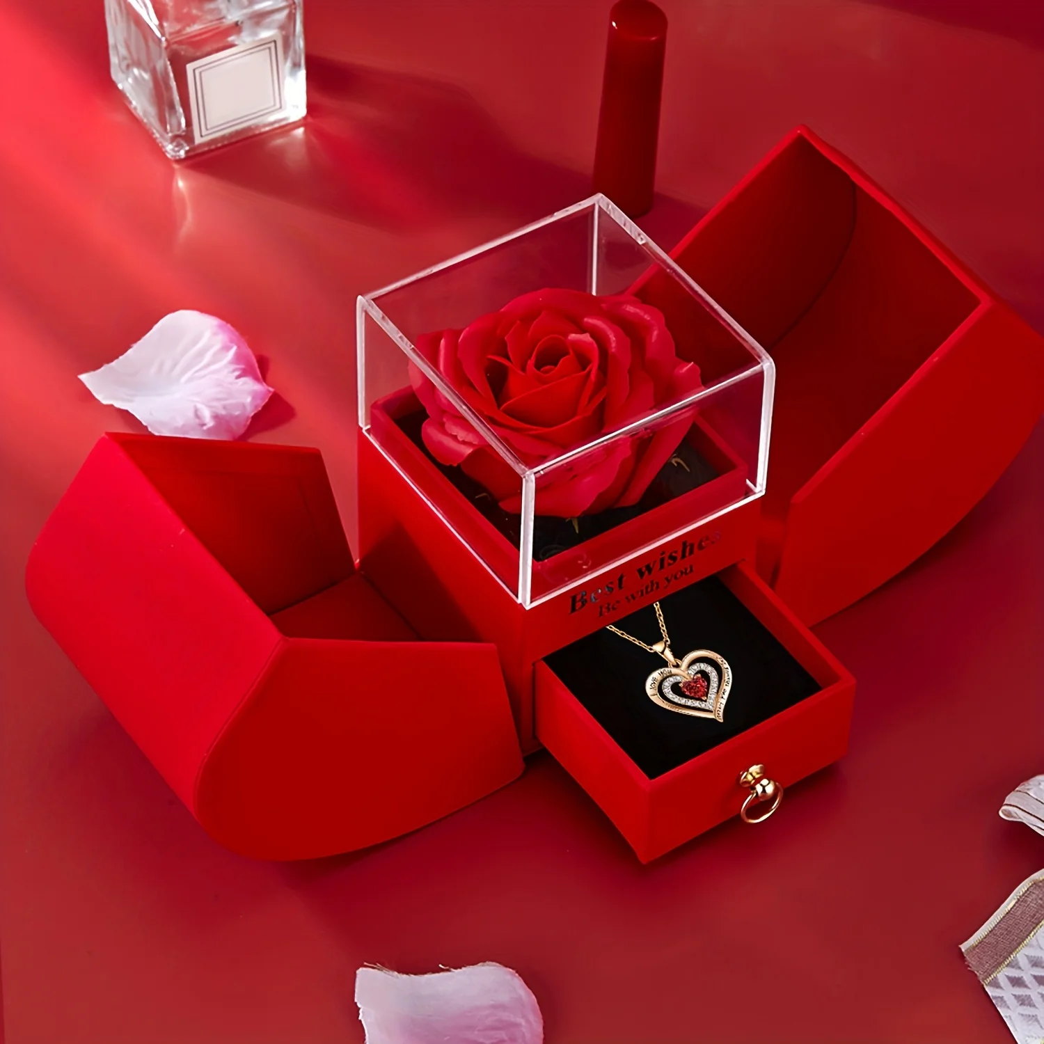 Christmas, Romantic Date Gift High-End Necklace Set with Red Rose Gift Box,Elegant and Charming Necklace Set